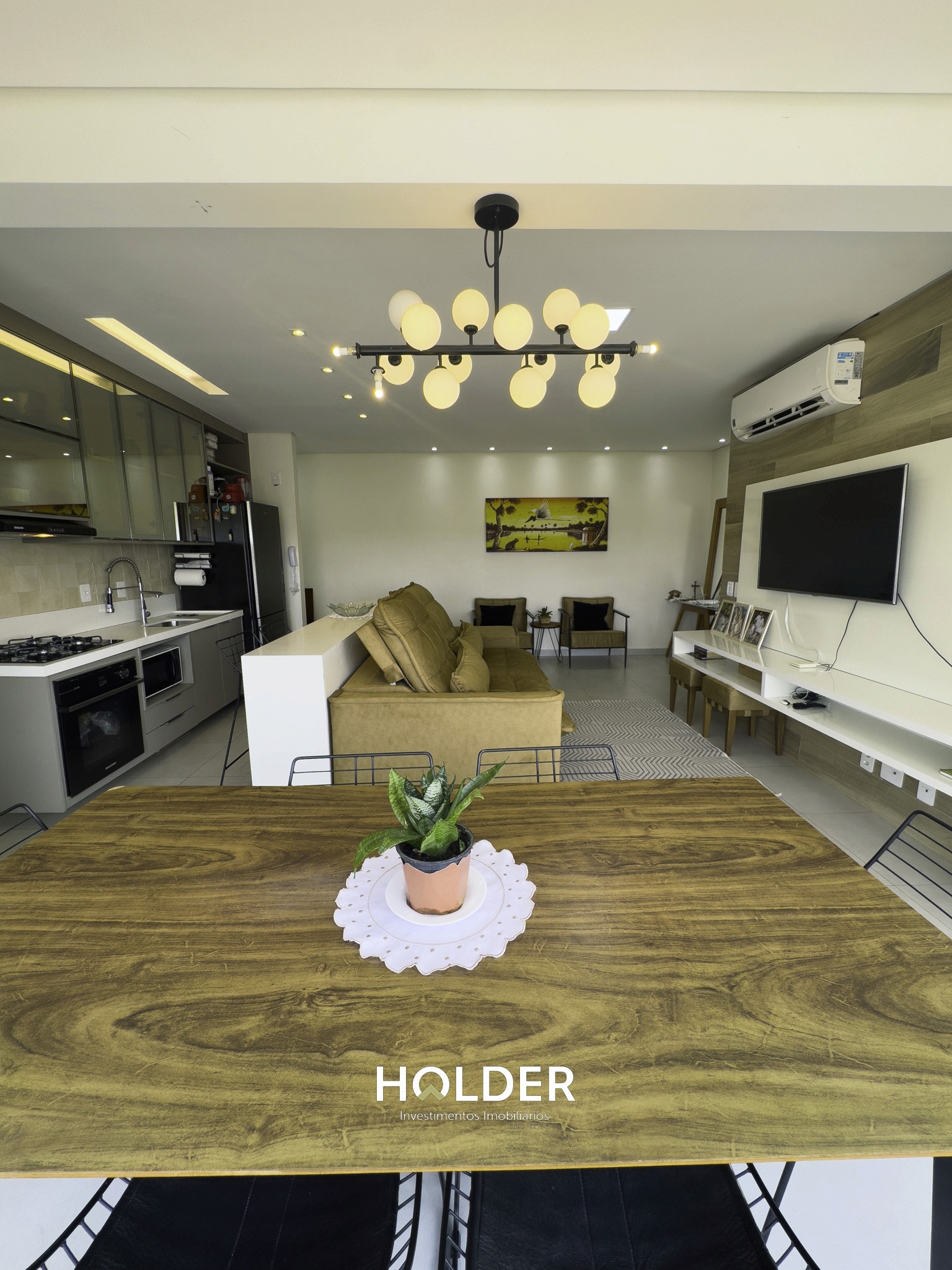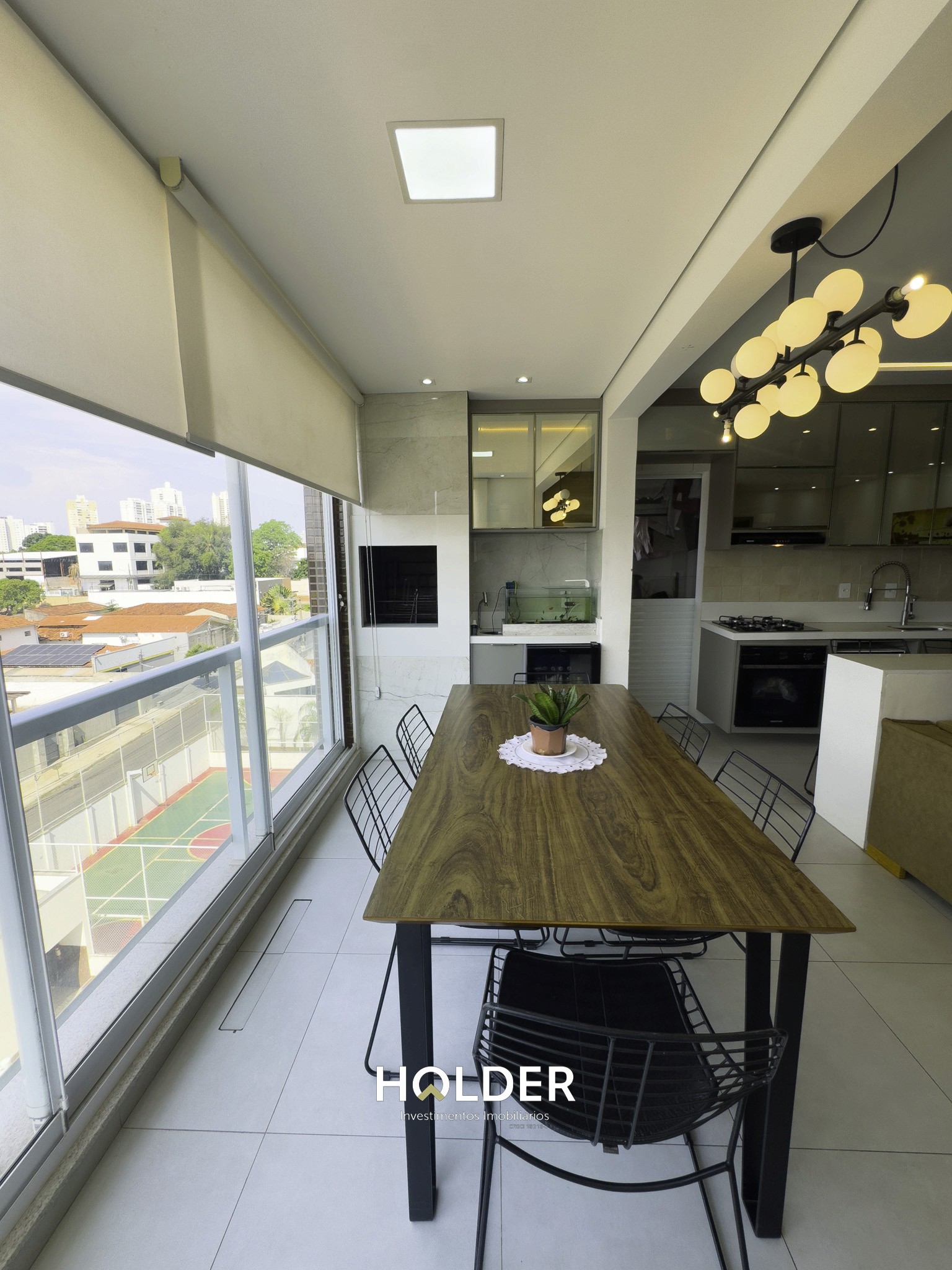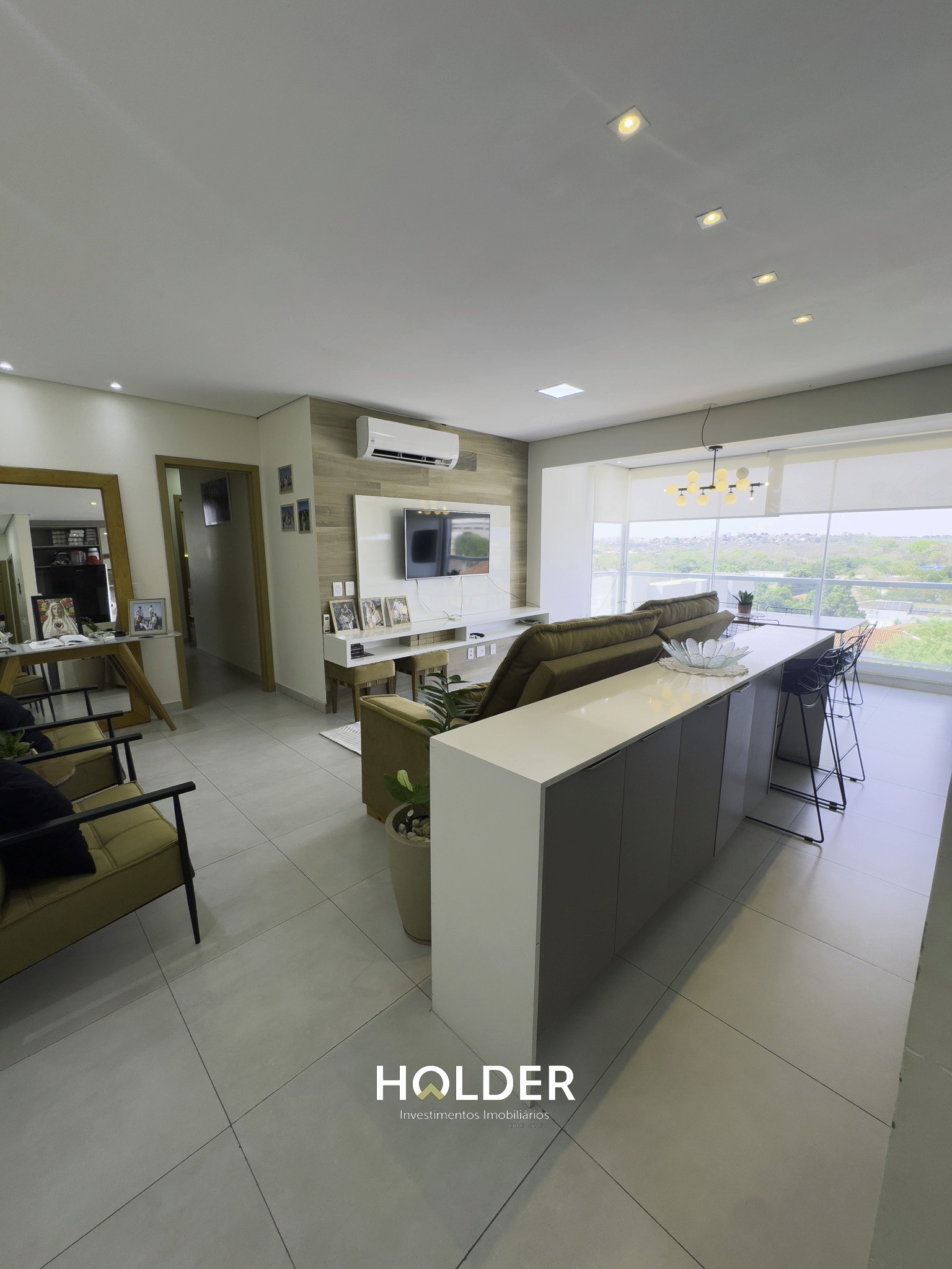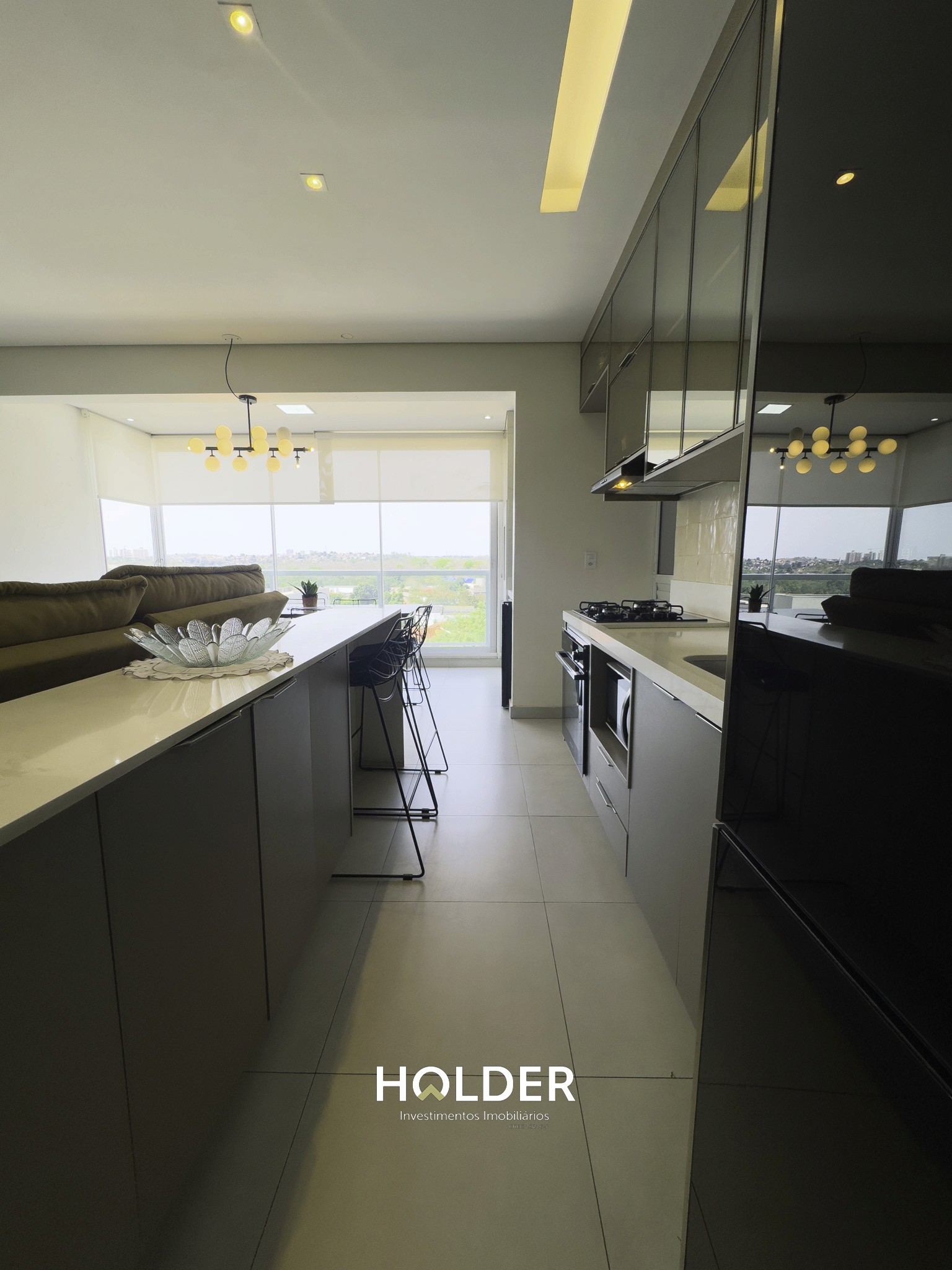 📌 Sala, cozinha e sacada gourmet totalmente integradas
